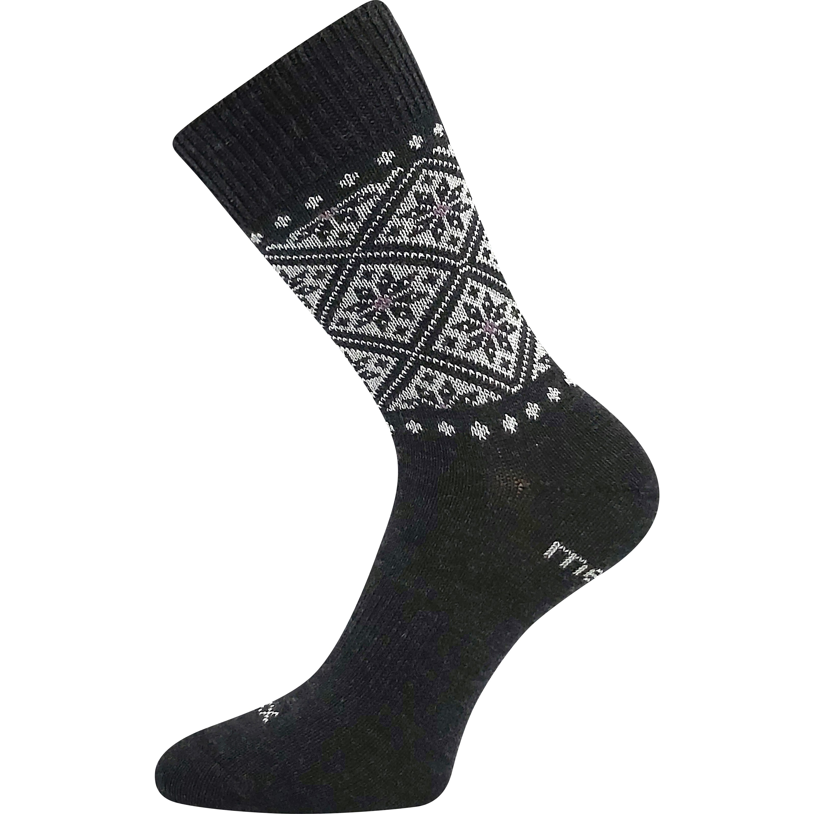 Teplé dámske ponožky s vysokým obsahom merino vlny obsahujú aj pridané strieborné ióny, vďaka čomu sú prirodzene antibakteriálne a chránia pred baktériami a zápachom. Tieto vlnené ponožky s obľúbeným nórskym vzorom majú veľmi mäkký, neškrtiaci lem, ktorý netlačí. Tieto hrubé dámske ponožky majú tiež reťazovo šitú špičku, ktorá je hladká a netlačí. Klasické zimné ponožky v teplotnej triede C sú ideálne pre chladnejšie obdobia od -20 °C do +5 °C.
